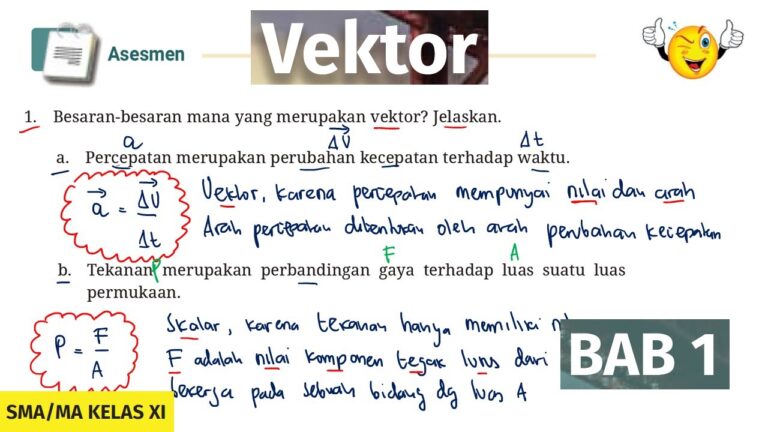 https://youtube.com/watch?v=CI0Lph05rtY#fisikasma #kurikulummerdeka #bukupaket Asesment 1. Besaran-besaran mana yang merupakan vektor? Jelaskan. a. Percepatan merupakan perubahan kecepatan terhadap waktu. b. Tekanan...