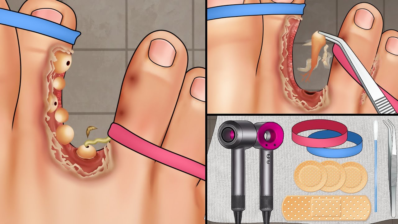 ASMR Treatment athlete’s foot and warts between toes at home | Foot care animation