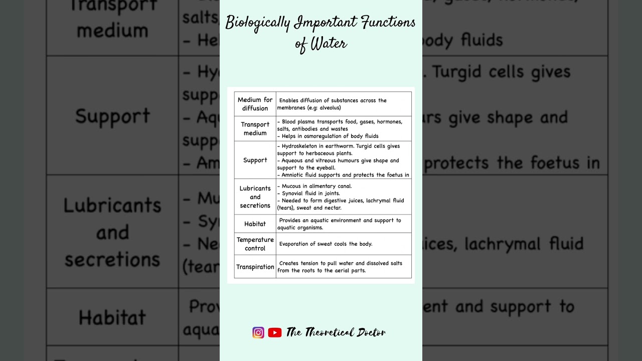 Biologically Important Functions Of Water (Pre-U Biology -STPM/Matriculation/A-Levels)#shorts #short