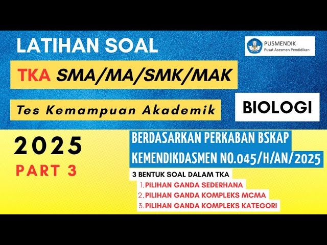 https://youtube.com/watch?v=P7Gzh5CDm_MSelamat datang di network ini! Di video kali ini kita akan membahas soal-soal TKA Biologi 2025 lengkap dengan pembahasan detail,...