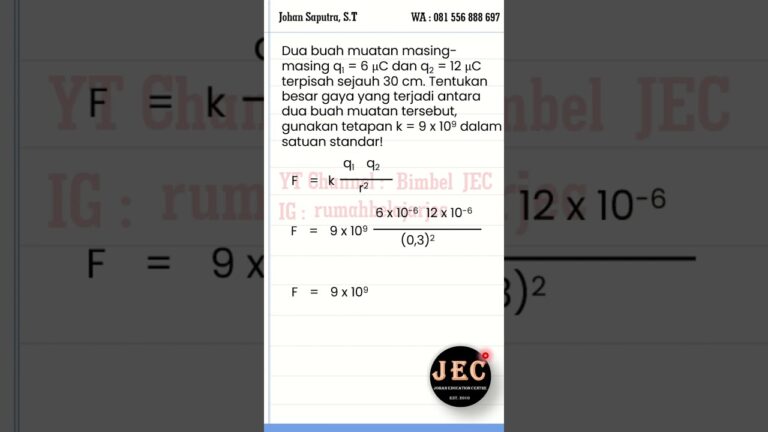 https://youtube.com/watch?v=ARKs2I7yUd4mencari besar gaya coulomb antara dua muatan listrik yang terpisah pada jarak tertentu #fisika #listrikstatis #gayacoulomb
