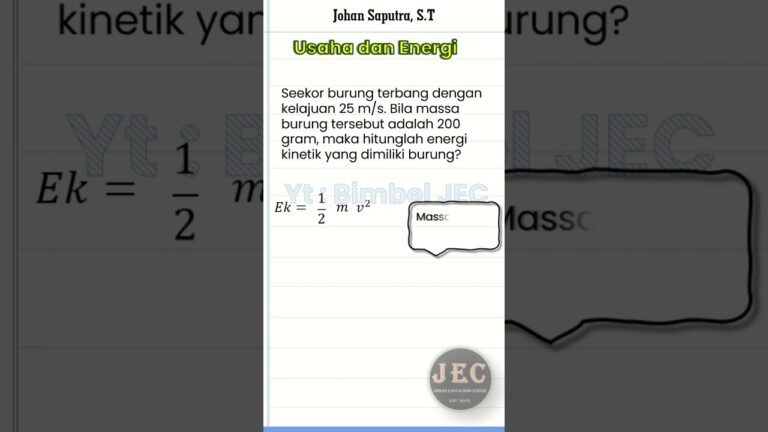 https://youtube.com/watch?v=lCOe2w_TbSApembahasan cara mencari energi kinetik #fisika #usahadanenergi