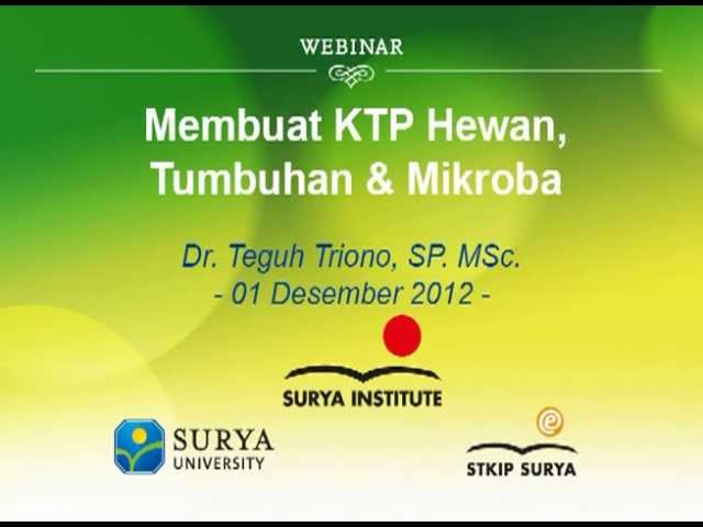 Webinar-12: Belajar Biologi Itu Menyenangkan: Ayo Membuat KTP untuk hewan, tumbuhan dan mikroba; Tanggal: 17 November 2012; Pembicara: Dr. teguh Triono